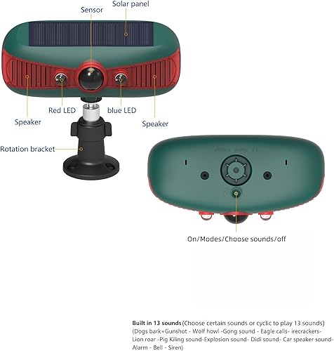 Comment on "HULPPRE Solar Outdoor Motion Sensor Alarm-13 Sounds Including Dog Barking&Gunshot,2x130db Loud Noise Maker,4 Modes,Red&Blue Motion Activated Strobe Light,Say Goodbye to The Intruders(Red/green alarm)"