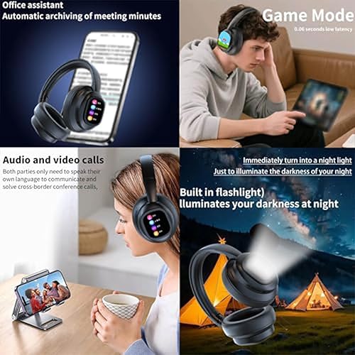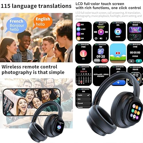 Hy-X1 Pro Wireless Headphones, with Detachable Full Color LCD Touch Screen, Translator Headphones Real Time 115 Language & Accents, Flashlight, Alarm, and Voice Recorder (1pc)(2pc)