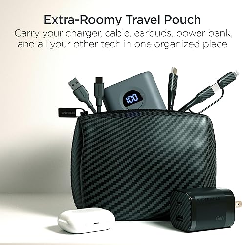 EXTRA-ROOMY TRAVEL POUCH FOR EASY ORGANIZATION: Travel effortlessly using our portable pouch that stores your HyperGear usbc to usbc fast charging cable and fast iphone charger, ensuring your gear remains organized. This setup is great for tech-savvy travelers and multi-device users wanting a neat, clutter-free experience, ideal when using iphone 15 and iphone 16 charging cable devices. It fits all your long usb c cable fast charging and usb c charger block needs.