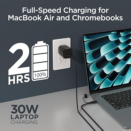ULTRA-FAST 30W DUAL OUTPUT GAN CHARGER: HyperGear's advanced GaN technology ensures super-fast charging for all your devices, including iPhones and iPads, making this the ideal iPhone fast charger type c solution. Experience the efficiency of a usbc charger, charger cord type c, and iphone 16 pro max charger that powers your iphone 15 charger, iphone 15 pro max charger, usb c fast charger, and iphone 16 charger block without overheating, ideal for tech-savvy travelers.