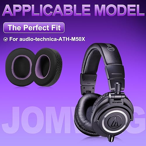 【Compatibility】Jomwag Professional Earpads Cushions Ice cooling protein skinFabric Replacement Earpads Cushions for Audio-Technica ATH-MSR7/M50X/M20X/M40X/M30X Headphones Replacement Earpads.