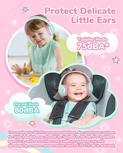 [Kid Hearing Protection Expert]:These kids headphones wireless come with a dual-mode volume limiter (75/80dBA) that follows WHO’s safe listening guidelines. The 75dBA mode is specially tailored for younger delicate ears, while iClever’s exclusive Sound Refiner softens harsh frequencies (2K–4KHz), delivering clear, kid-safe sound without compromise.