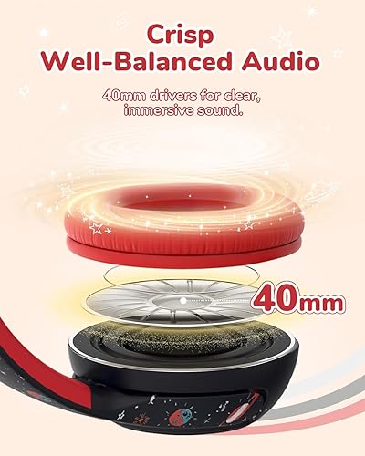 [Stable Bluetooth Connection]:Equipped with the latest Bluetooth 5.4 chip, these bluetooth headphones for kids pair effortlessly with iPhones, iPads, tablets, and more. Kids can enjoy smooth, lag-free audio with a stable connection that stays strong up to 33 feet away—no dropouts, just nonstop fun!