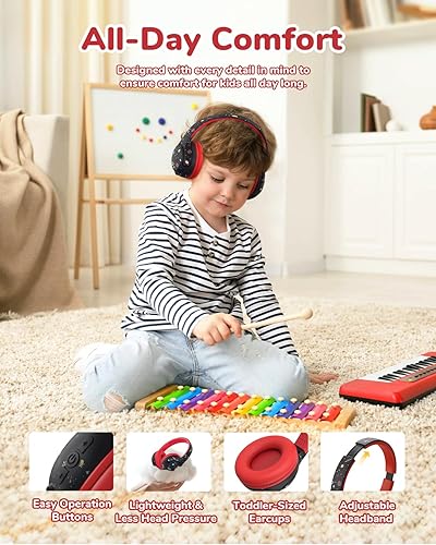 [Safe & Quality Materials]:Little ears deserve big care! That’s why our toddler headphones are made of materials that meet rigorous ASTM safety standards. The leather ear cushions are easy to keep hygienic, which is more beneficial to children's health. Plus, they're crafted from BPA-free, kid-proof materials that can handle everyday adventures!