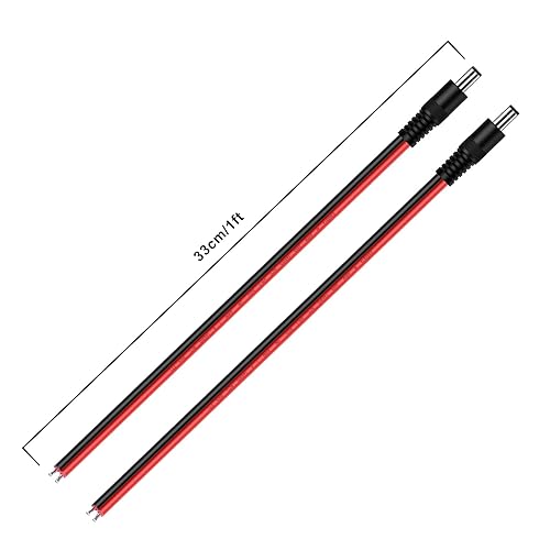 iGreely 5.5mm x 2.1mm DC Power Pigtail Cable, UL2468 14AWG Copper Wire, Heavy-Duty DC Connector for 12V/24V LED Lights, CCTV Cameras, Power Adapters, and DIY Power Projects 2Pack 1 Ft (Male)(Male)