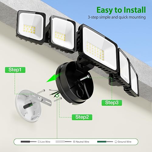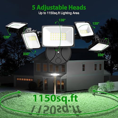 Wider Illumination Range: Compared with the traditional 3 heads led flood light outdoor, our bright flood light has 5 rotatable light heads for 360° wide angle lighting. With the 360° beam angle, it provides a wider lighting coverage, illuminating an area of up to 1150 ft² with ease
