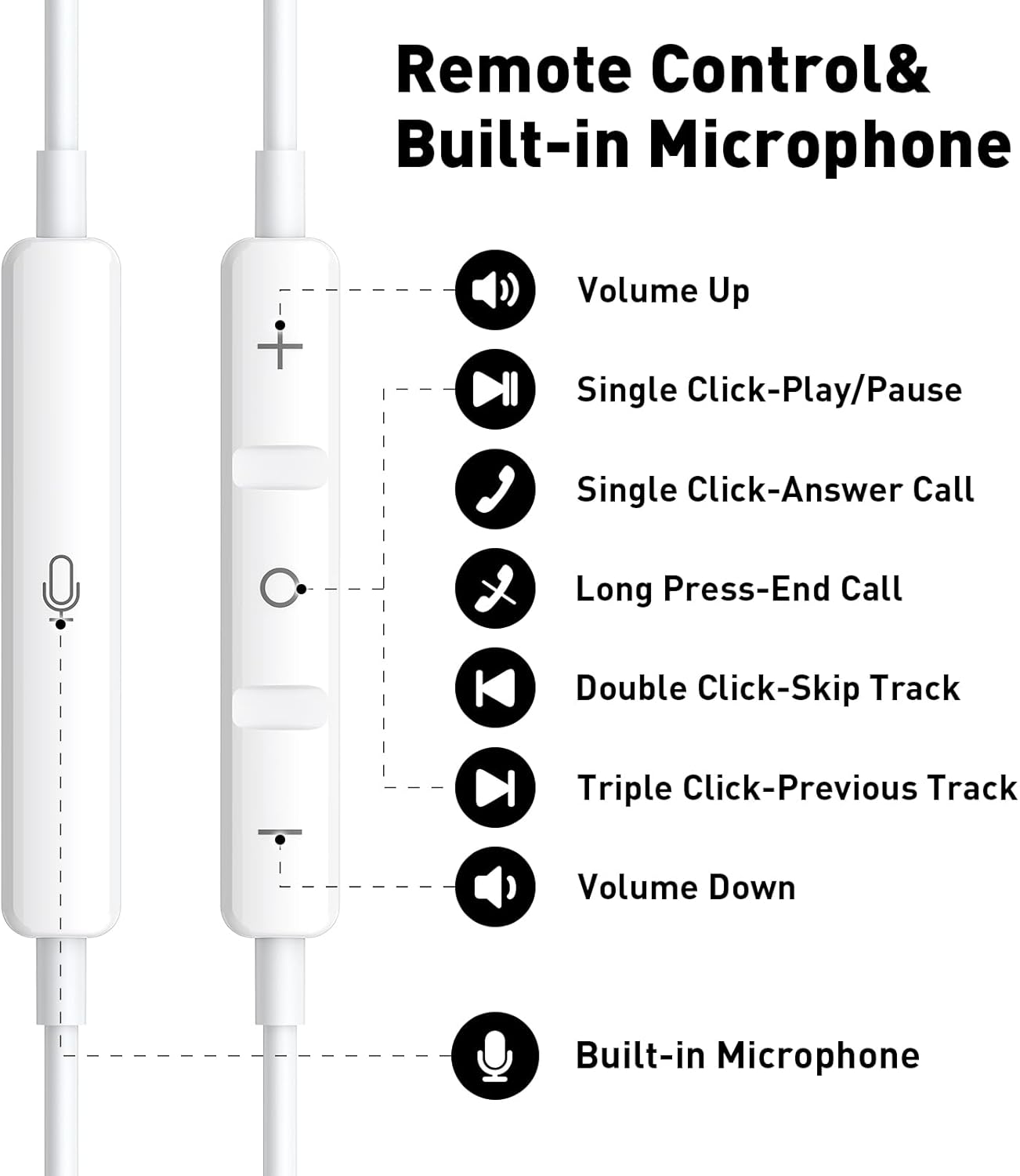 Wide Compatibility: Wired ear buds for iPhone 15 16 Plus Pro Max 16e 17 17 Pro 17 Pro Max,for iPhone Air 2025, for Samsung Galaxy S25 S24 S23 S22 S21 S20 Note 20 10 Ultra Plus FE Z Fold Flip 7 6 AI 5 4 3 Z A53 A55 A54 A33 A34 A35, for iPad 11 10(10th Generation) Air 4th 5th Pro Mini 6th, for MacBook 11'' 12'' 13" 14" 15" 16", for Google Pixel 10 9 9a 8 8a 7 7a 6 6a 5 4, for OnePlus Open 11 10T 5G 10 9 for Motorola Moto G Edge+ and other USB C devices