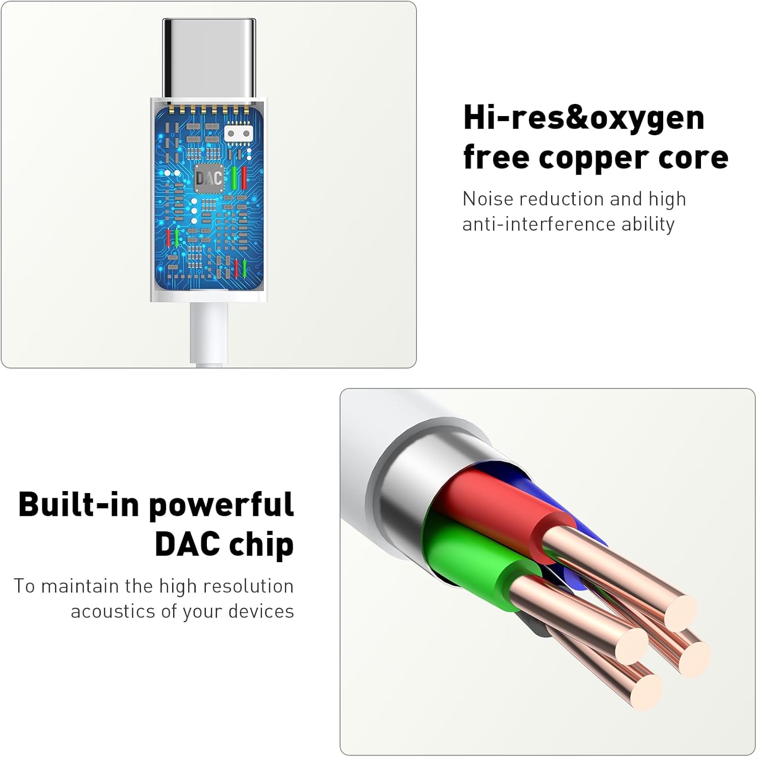 Quality Material USB-C Earphones: Featuring metal-plated connectors for superior contact and durability, these 1.2 meters long cord ear phones come with a built-in DAC chip that delivers high-resolution bass sound with no buzzing, breaking or popping, just pure stereo audio music enjoyment