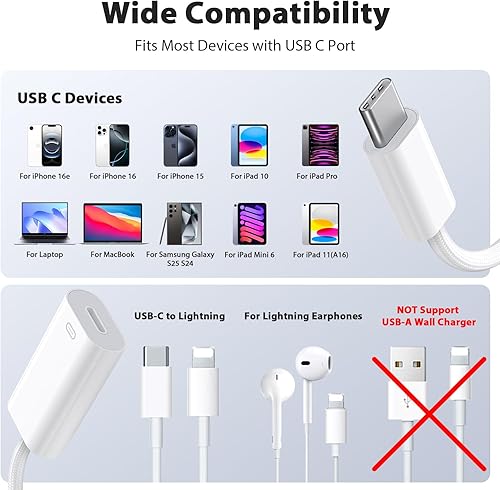 Widely Compatibility:For iPhone 17/17 Pro/17 Pro Max,for iPhone Air 2025,for iPhone 16/16 Plus/16 Pro/16 Pro Max/16e/15/15 Plus/15 Pro/15 Pro Max,for iPad mini 6,for iPad Pro,for iPad 10 11 A16,for iPad Air 4,for MacBook and for Samsung Galaxy S25 S24 S23 S22,S21 Note 20 Ultra,for Google Pixel 10 9 9a 8 8a 7 7a 6 6a 5 4 3 and Other USB C phone/tablets/laptops and computer devices