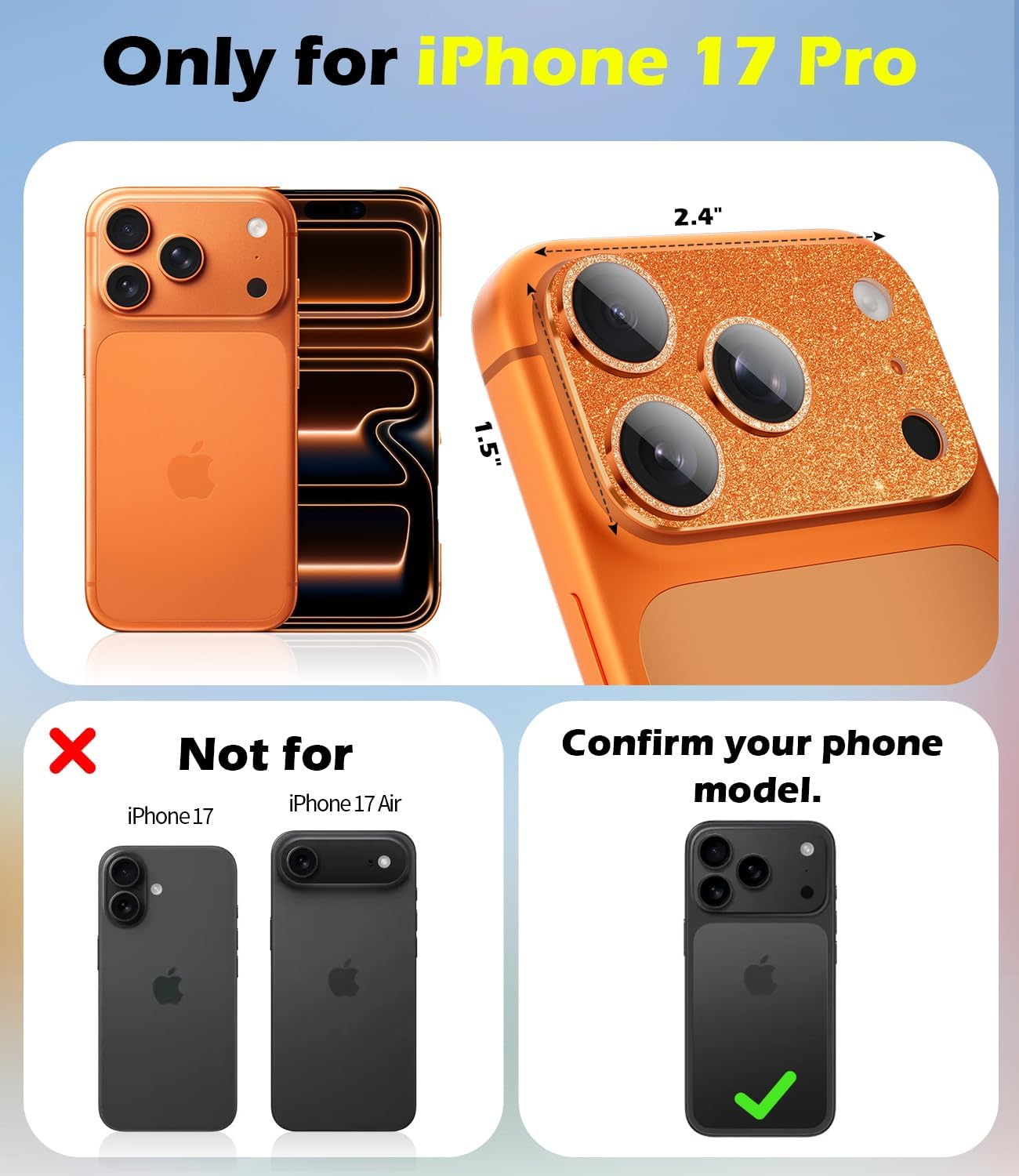 Comment on "imluckies Compatible with iPhone 17 Pro Max Camera Lens Protector Bling, Ultra HD Tempered Glass Shiny Diamond Camera Screen Protection, 9H Anti-Scratch & Easy Install, Glitter Sliver(17pro 6.3" Glitter Orange)"