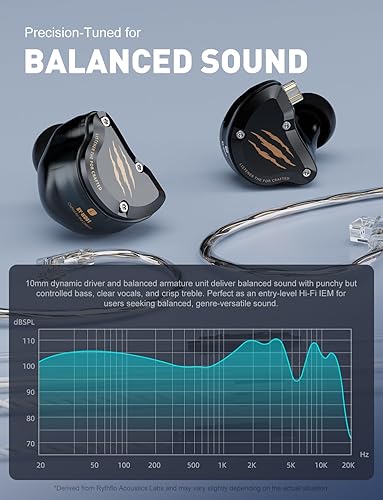 1BA+1DD Dual Hybrid Driver IEM: Balanced, textured bass meets bright, articulate vocals — thanks to a 10mm Dynamic Driver and Balanced Armature Unit—delivering detailed, natural sound for everyday listening