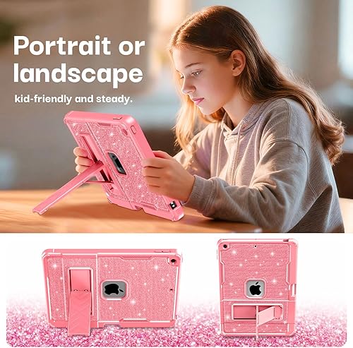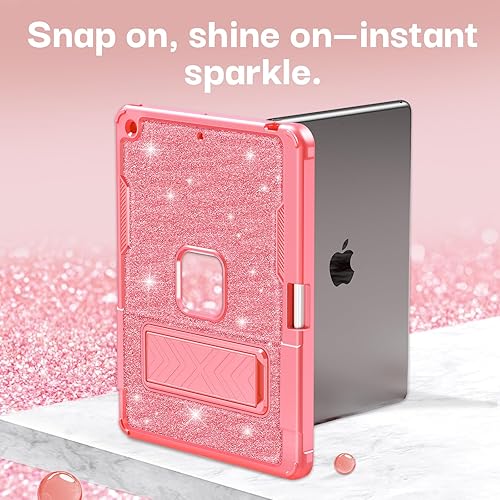 Sparkle Glitter: Boasts a vibrant pink hue with a glittery, sparkly back panel, this iPad 9th/8th/7th generation case focus on giving the device a glamorous and eye-catching look while having a sense of individuality, especially for fashion girls, woman or cute kids