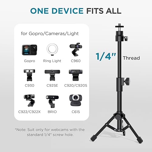 Premium Stability: This webcam tripod stand combines a heavy-duty metal core with reinforced ABS plastic to eliminate vibrations and wobbles. The non-slip rubber tripod grips your desk like a vice, ensuring your webcam stays perfectly still. No more distracting jitters in your video calls or content.