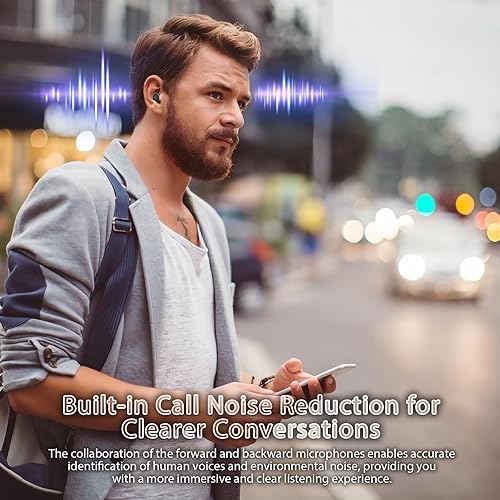 【Premium Sound & HD Call Quality】This mini earbuds wireless bluetooth has a built-in full frequency sound unit, and the custom moving coil speaker has a more surging and layered sound quality like a concert. Additionally, the earbuds for sleeping are equipped with a built-in microphone that effectively reduces background noise and echo, ensuring crystal-clear voice calls even in noisy environments.
