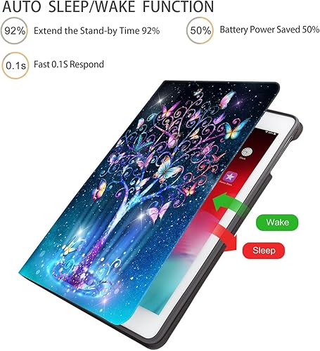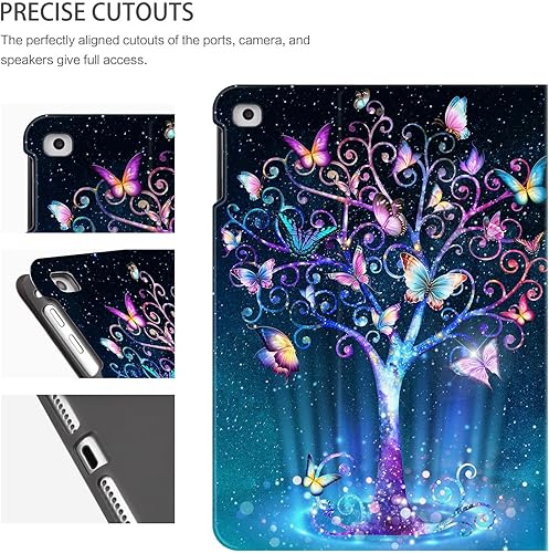 iPad 9.7 Case for iPad 6th Generation, iPad 5th Generation case, iPad Air 2 Case/iPad Air 1 Case 9.7-inch ipad case 6th generation Multi-Angle Adjustable Stand Auto Wake/Sleep, Starry Night Sunflowers(Fluorescent Butterfly Tree)