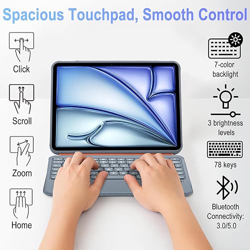 Precision Touchpad: The light and thin ipad case with keyboard enjoy seamless navigation with multi-touch gesture support and a highly responsive touchpad. Effortlessly browse, edit, and control your iPad with enhanced accuracy and no lag—ideal for both work and entertainment.