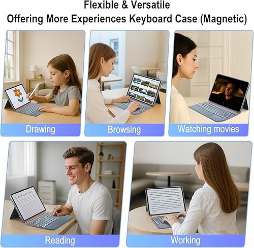 Magnetic Detachable Design: This A16 iPad case with keyboard features a strong magnetic attachment for easy setup and removal. The adjustable backstand supports both horizontal and vertical viewing angles, perfect for typing, watching movies, drawing, reading, and more.