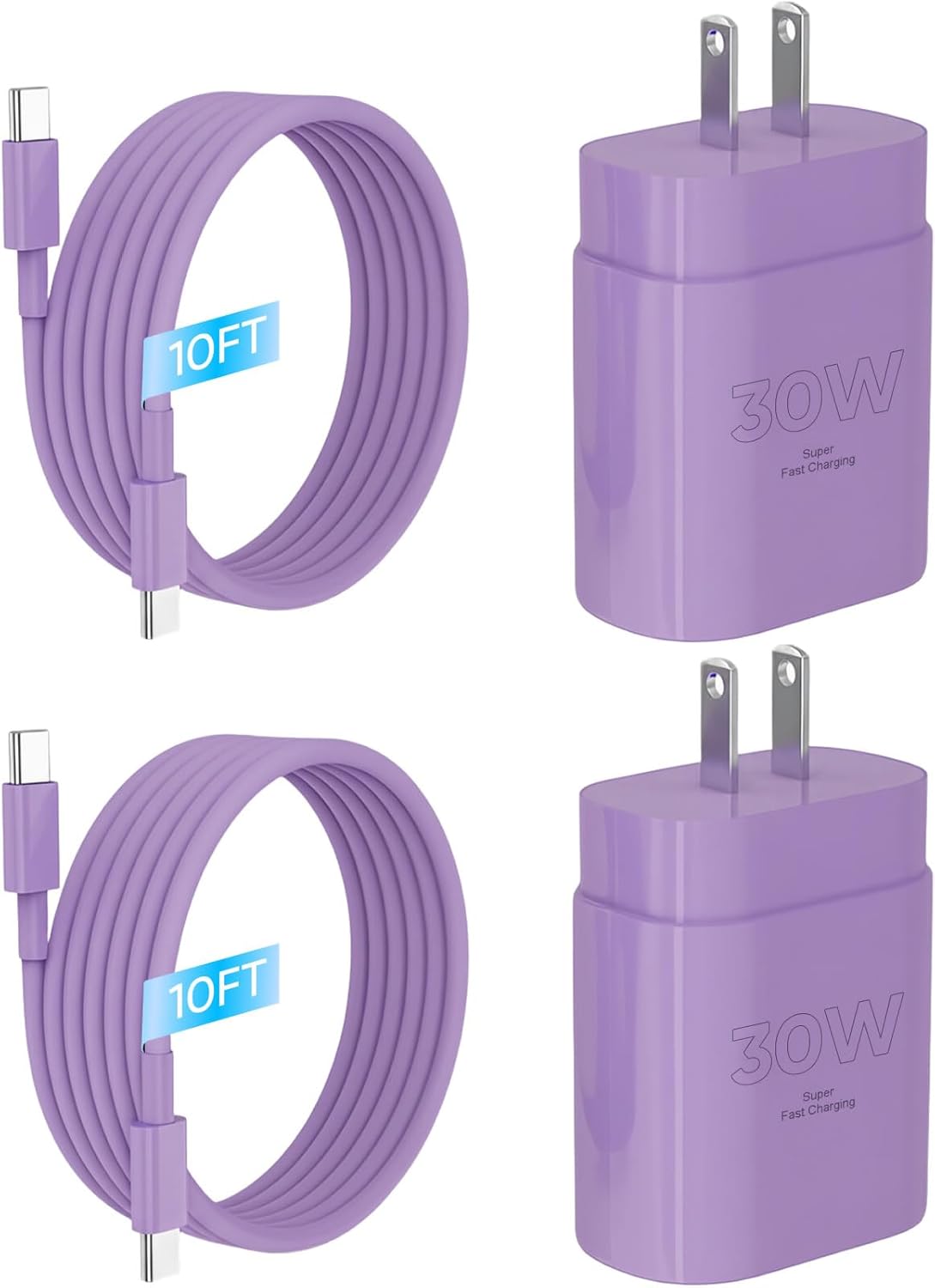 Included Components: 2 fast charger blocks, 2 USB-C to USB-C cables