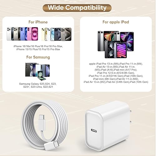 [ Universal Compatibility ] Compatible with iPhone 16/16 Plus/16 Pro/16 Pro Max/16 e,iPhone 15/15 Plus/15 Pro/15 Pro Max,iPad Pro 13-in.(M4),iPad Pro 11-in.(M4),iPad Air 13-in.(M3),iPad Air 11-in.(M3),iPad (A16),iPad mini (A17 Pro),iPad Pro 12.9-in.(6/5/4/3th Gen),iPad Pro 11-in.(4/3/2/1th Gen), iPad Air (5/4th Gen),iPad (10th Gen),iPad mini (6th Gen), for Galaxy S25, S24, S23, S23+, S23 Ultra, S22, S21 and all USB-C devices