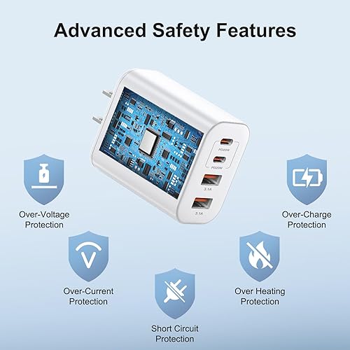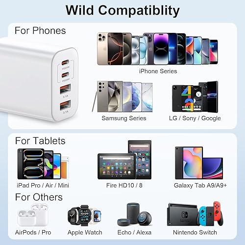 【Universal Compatibility】4-Port PD + QC power adapter compatible with iPhone 16/15/14/13/12/11/Pro Max/XS/XR/8/7/Tablets, MacBook Air 13inch/MacBook Air 2018 and later, Mac Book Retina 12 inch/MacBook Pro 2016 and late, iPad Pro 12.9 inch/6th/5th/4th/3rd generation, iPad Air 5th 4th, iPad Mini 6, iPad 10th, for Samsung Galaxy S23, S23+, S23 Ultra, S22, S21, S20, S10 and more.