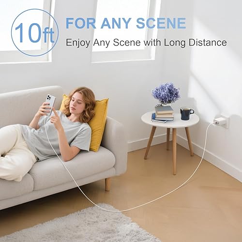 【10ft Extra Long Cable】Included 10ft USB-C to C cable offers unmatched flexibility for charging from a distance. Whether you’re on the couch, at your office desk, or in the car, you won’t be tied down by short cords. Made with durable materials, it lasts 5x longer than standard cables, resisting fraying and wear even with daily use.