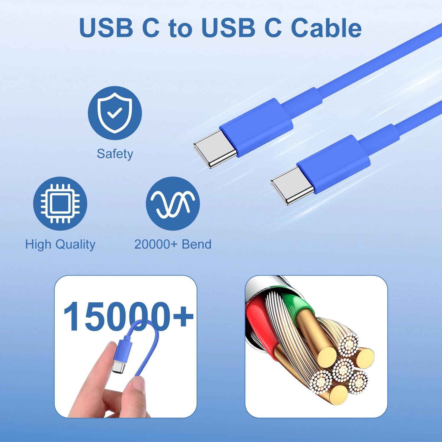 60W C-type Fast Charging Cable : The 60W 10FT C-type to C-type charging cable has a long charging distance and fast charging, making it convenient for you to charge remotely in the bedroom, living room, or office. It also has data transmission function, making it easy to use, with a data transmission speed of up to 480 Mbps.