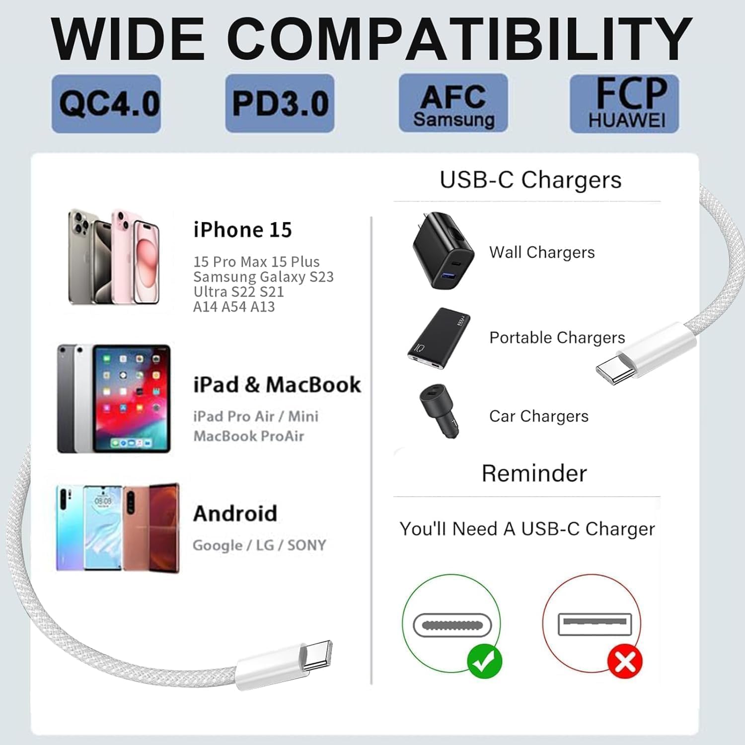 Compatible Devices: USB C wall charger, USBC to typec Fast Charger 6FT