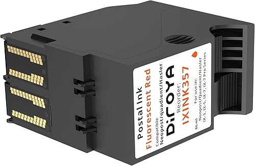 Print throughput: with the IXINK357 fluorescent red ink cartridge can support up to 18,800 impressions, Whether you are using a Quadient, Neopost or Hasler IX-3, IX-5, IX-7, IX-7 Pro Series Franking Machine, the IXINK357 ink cartridge will help you lower your cost per print.