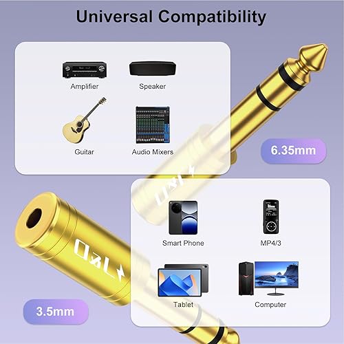 Multi-Pack Set: Includes 5 adapters; ideal for converting 3.5mm plugs to 6.35mm cables