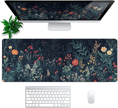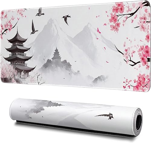 Japanese Mouse Pad, Large Japanese Desk Mat, XL Anime Gaming Keyboard Mat, Non-Slip Rubber Base, Big Extended Desk Protector for Office and Home, 31.5”x11.8”(Flower 1)