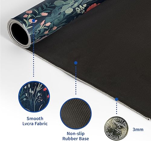 ♥[Large and Perfect Size]:The extended Cherry Blossom desk pad measures 31.5x11.8x0.12 inches that covers most of the desk.The desk pad is large enough to have a mouse, gaming keyboard, and other desk items while maintaining protecting your desk all the time.You can freely move your mouse without any interruption and don't have to continually adjust the mat as you do with traditional mousepads.