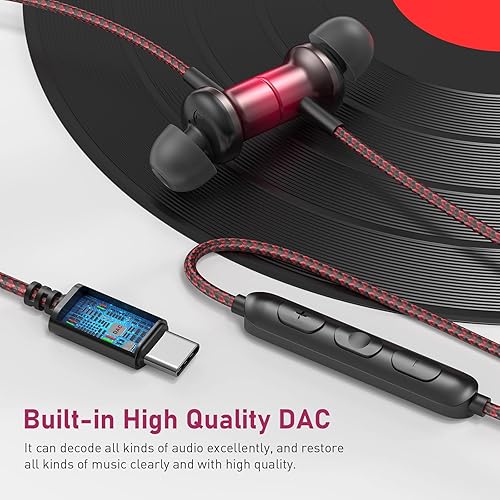 Magnetic USB C Earbuds: Powerful magnet is built-in the back of each earbud. You can wear the usbc headphones around your neck by sticking the earbuds together, so they won't move around too much or fall off, and you can reach them easily once you want to put them on. Meanwhile, it comes with a storage case to storage the type c earbuds, less mess in daily use