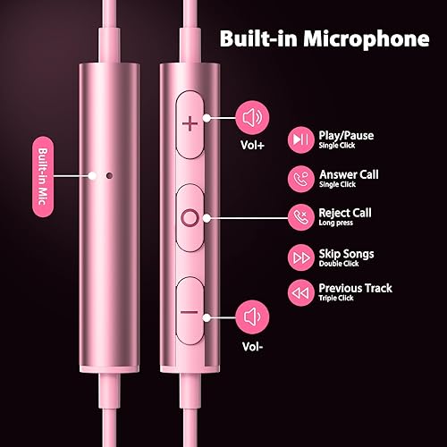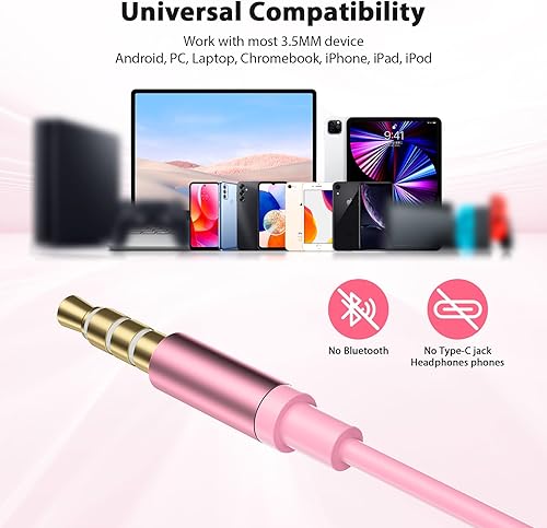 Jelanry Wired Earbuds 3.5mm Headphones with Microphone, Magnetic in-Ear Audio 3.5mm Jack Noise Canceling Earphones Stereo Clear Call Volume Control for Airplanes Kindle Nintendo Switch MP3 Android(Pink)