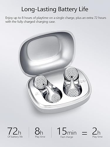Jewelry-Inspired Earbuds for Women - This ear buds wireless bluetooth earbuds features a teardrop silhouette inlaid with 200 hand-set stones —like moissante diamond . Stylish like earrings, powerful like true wireless earbuds.