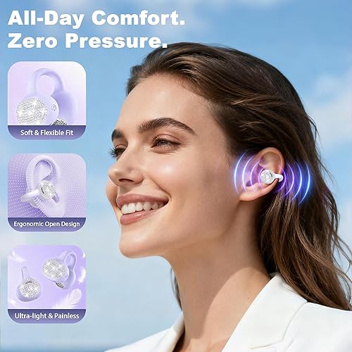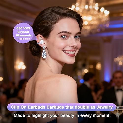 【Integrated Diamond Design — Sparkle That Stays】Shine brighter with our jewelry-inspired clip-on earbuds, featuring 630 built-in VVS-grade Crystal Diamonds that never fall off. No detachable parts — just lasting brilliance, effortless elegance, and a secure fit. These fashion earbuds redefine style and technology, adding luxurious sparkle to your everyday look. Perfect wireless clip-on earbuds for women who love elegance and innovation.