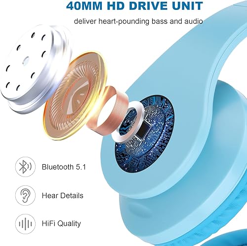 【ADJUSTABLE AND PORTABLE DESIGN】: Adjustable headband are ergonomic design and ultra-soft ear cups, Bluetooth headphones provide a comfortable around-ear fit. Foldable design makes it easy for you to take the headphones whenever they go. Perfect for on-line courses, classes, movies, etc.