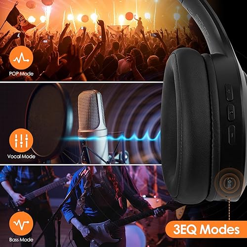 【3 EQ modes and HiFi Stereo Audio】- Wireless headphones has the most advanced dual 40mm dynamic sounding units and 3 EQ modes, specially designed for audiophiles. The balance mode, bass, and treble modes can be switched freely to enjoy different music experiences at concerts or concert halls or at home. No matter what type of music you like, these wireless headphones over ear can meet your needs and immerse you in the world of music.