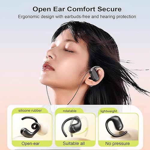 Open Ear and Ultimate Comfort - Open-ear and ergonomic design, 4g ultra lightweight, let earphones unrivalled comfortable and hardly noticeable, perfect for users who need long time listening or calling. No ear canal fatigue or hearing damage risk like in-ear earbuds. No bulky burden like over-ear headphones