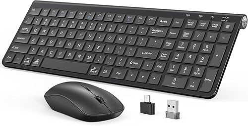 Plug&Play and Sleek Design --The keyboard and mouse set commonly use one nano receiver(Type-C) only for saving USB port of your computer or laptop.*The nano receiver is snapped in the storage of mouse near battery compartment. JOYACCESS wireless desktop keyboard has all keys in scissor-cross low profile structure;which maks it ulra-slim(keystroke travel 4mm),resposive and soft.