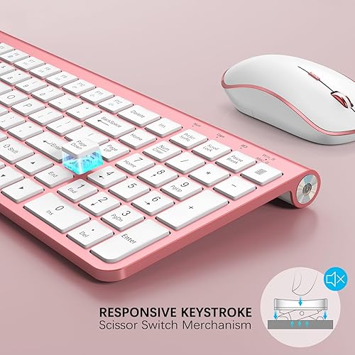 JOYACCESS Wireless Keyboard and Mouse Combo,2.4G Ergonomic Typewriter Keyboard with Type-C Receiver and Adjustable Tilt for Computer, Windows,Desktop, PC, Laptop-Cangling Green(pink)