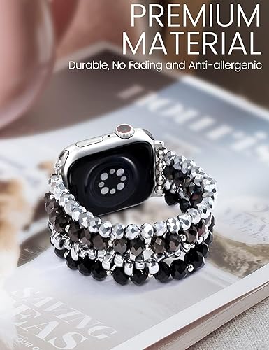 Comment on "JR.DM Beaded Bracelet Band for women Compatible with Apple Watch 42mm(S3/2/1) 44mm 45mm 46mm 49mm Fashion Dressy Stretchy Handmade Strap for iWatch Series 11/10/9/8/7/6/5/4/SE 3/2/1 Ultra(Pearl White)(A Black Silver,41/40/38/42mm(S10/11)-M)"