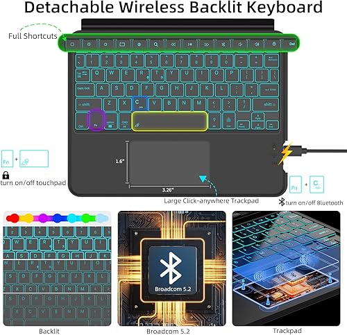 Keyboard Description: Bluetooth Backlit Trackpad Detachable Keyboard