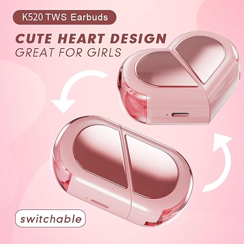 K520 Audifonos, K520 Earbuds, Audífonos En Forma De Corazon, with Rotatable Heart Shaped Charging Case, for Sports and Daily Use (1 Pcs,White)(Pink,1 Pcs)