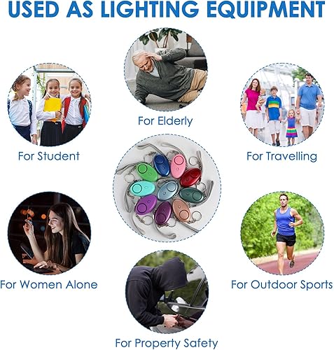 LED Design: the security alarm keychain can be applied for night illumination, works as an emergency light, suitable for night running, dog walking, hiking, camping and other outdoor activities, bright light warns intruders and can help you in the dark