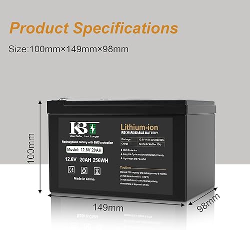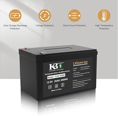 【Premium Battery Performance】: LiFePO4 Lithium-ion battery has high energy density, light weight, long cycle life, good charge-discharge performance, no memory effect, low self-discharge rate, environment-friendly etc. This KBT 12V 15Ah battery has built-in BMS protection PCB Board to prevent battery from overcharge, over-discharge, over-current and short circuit.
