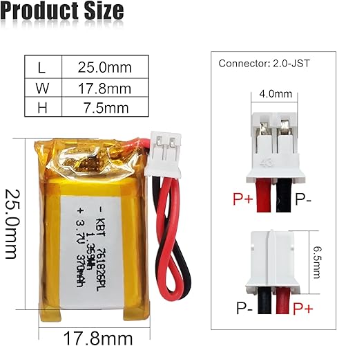 402030PL Lithium polymer battery: (Size 30*20*4mm ) 3.7V 200mAh , 2pack 402030 batteries in package. Package comes with JST 1.25, 2.0, 2.54 connectors.