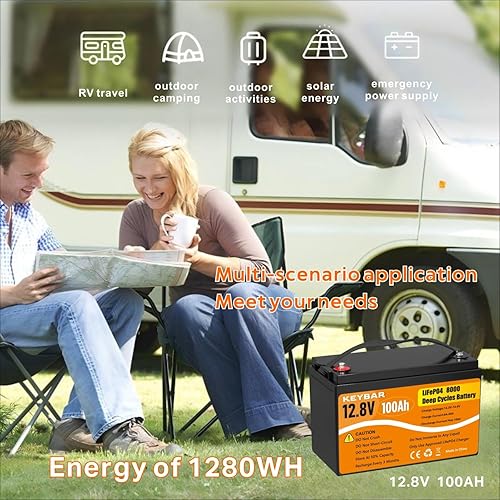 KEYBAR 12V 100AH LiFePO4 Battery – BMS Protected, 1280WH, 8000+ Cycles, 10+ Years for Solar/Yacht/Off-Grid Home