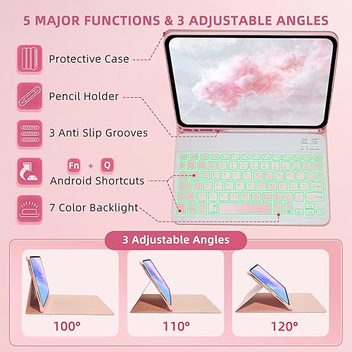 【7-Color Backlit Keyboard】Just press the light control button to easily adjust to your favorite different colors, and there is also a breathing light backlight mode that can be switched automatically. excellent visual experience when typing in a dark environment.This keyboard features a scissor mechanism for a quiet, responsive, and comfortable typing experience. Its magnetism base allows for easy detachment, and it's equipped with shortcut keys, making it ideal for work and travel