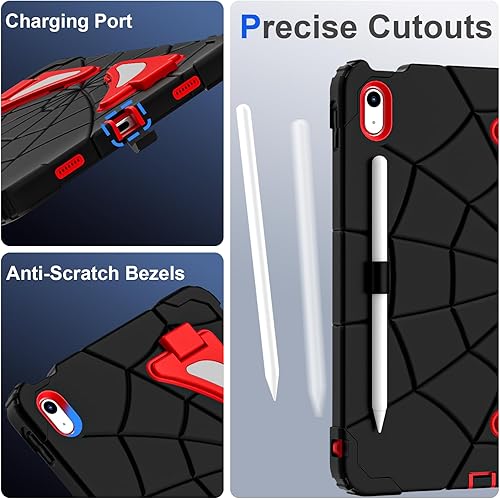 Kids Case for iPad 10th/11th Gen (10.9/11 Inch 2022/2025 A16) – Shockproof 360° Full-Body Protection Cover with Screen Protector, Stand & Pencil Holder – Boys’ Anti-Drop Design-RED Blue(BLACK+RED)