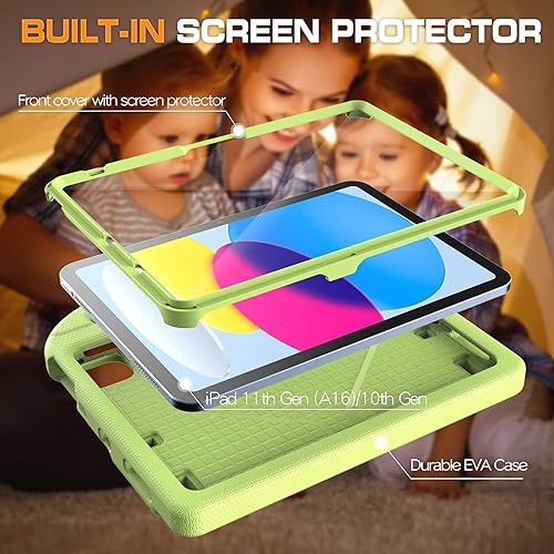 Kids Case for iPad (A16) 11th Generation 11 Inch 2025/iPad 10th Generation 10.9 Inch 2022, with Screen Protector and Pencil Holder, Shockproof Handle Stand Cover for iPad 11/10 Gen, Yellow(Lime Green)